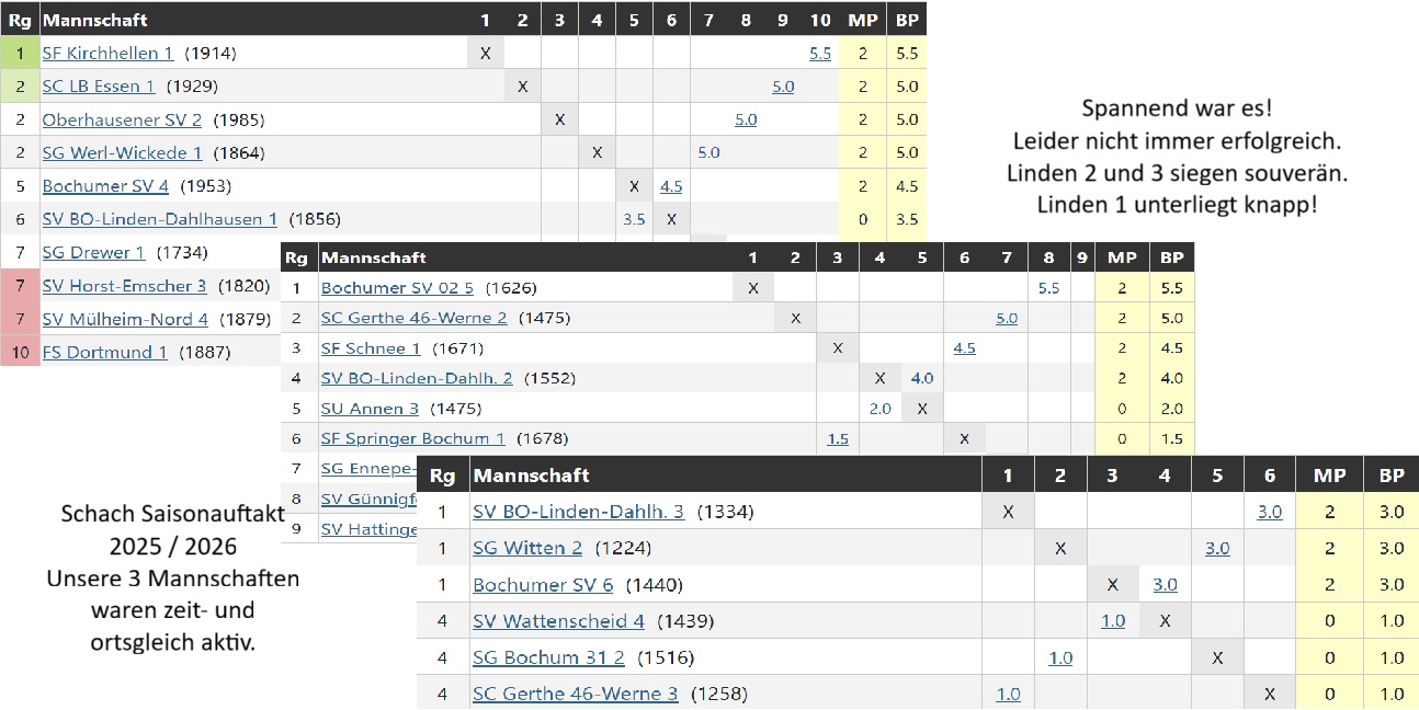 28.09.2025 Runde 2, Linden 1 und 2 sind im vorderen Mittelfeld angekommen