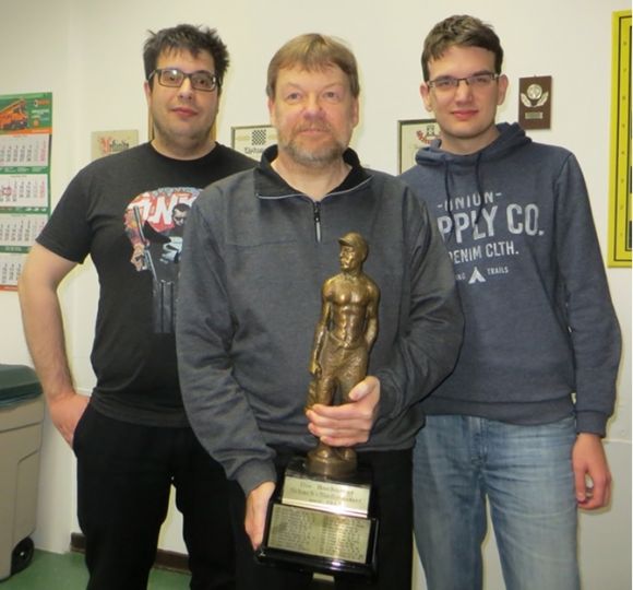 15.11.2016 - Letzte Runde der Stadtmeisterschaft in Günnigfeld. Um kurz vor 0:00Uhr ist es amtlich. Nach König e3! sieht Schwarz keine Chance mehr und gibt auf. Ralph rückt durch den Sieg von vier auf eins und verdrängt unter anderem Matthias auf Rang zwei. Trotz zweier Verlustpartien steht er oben, sein kämpferisches Schach wird mit fünf Gewinnpartien belohnt, keiner hat mehr.
